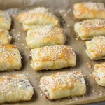 Place the pastry on a baking tray lined with parchment paper. Brush the egg wash mixture on each puff and sprinkle with sesame seeds.