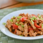 Add remaining 2 tsp oil, bell pepper, and jalapeno, if using to now- empty skillet and cook until just softened, about 3 minutes. Return chicken and any accumulated juices to skillet and toss to combine. Whisk sauce mixture to reconstitute, then add to skillet and cook, stirring constantly, until slightly thickened, about 1 minute. Garnish with green onions and serve.