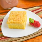 Remove from oven, brush top with melted butter and sprinkle with sugar. Return pan to the oven and bake for another 10 minutes. Let cool before cutting into squares.