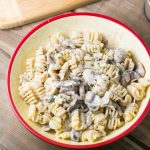 Creamy, dreamy cream of mushroom pasta is a comforting bowl of fusilli coated in a rich mushroom sauce, topped with savory Parmigiano Reggiano. It's an easy weeknight winner!
