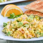 Fluffy scrambled eggs meet savory ham and creamy avocado in this tasty breakfast. With melted cheese and a hint of garlic, it’s pure morning bliss.
