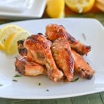 Put the lemon juice, garlic and honey in a small bowl and stir until the honey has dissolved. Pour over the chicken wings and stir until well coated. Return to the oven and cook for another 30-40 minutes, or until golden brown.