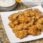 Lift chicken from oil. Drain briefly and dip in honey mixture, then place on a rack set in a baking pan. When all chicken is cooked and dipped, sprinkle with sesame seeds, if used.