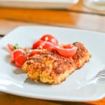 Meanwhile, toss tomatoes, garlic, basil and remaining 1 tablespoon oil together in a bowl and season with salt and pepper to taste. Transfer chicken pieces to individual plates and top with cherry tomato mixture.