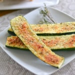 Mix cheese and herbs together in a small bowl and sprinkle over the zucchinis. Bake for 15 minutes and place under the broiler for another 3-5 minutes until cheese is crispy and browned.