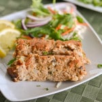 Bake for 30 minutes, add reserved salmon liquid (I got 1/3 cup) and then continue baking for another 20-30 minutes or until nicely browned. Cool salmon loaf in pan for 15 minutes, loosen from sides of pan and turn into platter.
