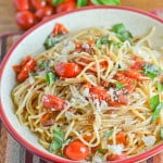 Spaghetti tossed with crispy pancetta, sweet cherry tomatoes, and fragrant garlic creates a comforting dish that bursts with flavor and freshness. Top it off with rich cheese and basil for a delightful finish.