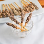 In a microwave, melt chocolate and shortening; stir until smooth. Dip the caramel-coated end of each pretzel into the chocolate, allowing excess to drip off; sprinkle with nuts. Return to foil to cool.
